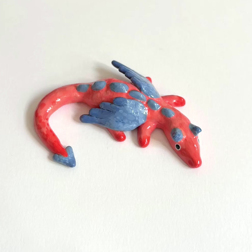 a baby dragon just for u -- sculpted from oven-bake polymer clay, painted, and sealed with high-gloss varnish. you choose your colors and whether they're facing left or right. customization description can be entered at checkout.